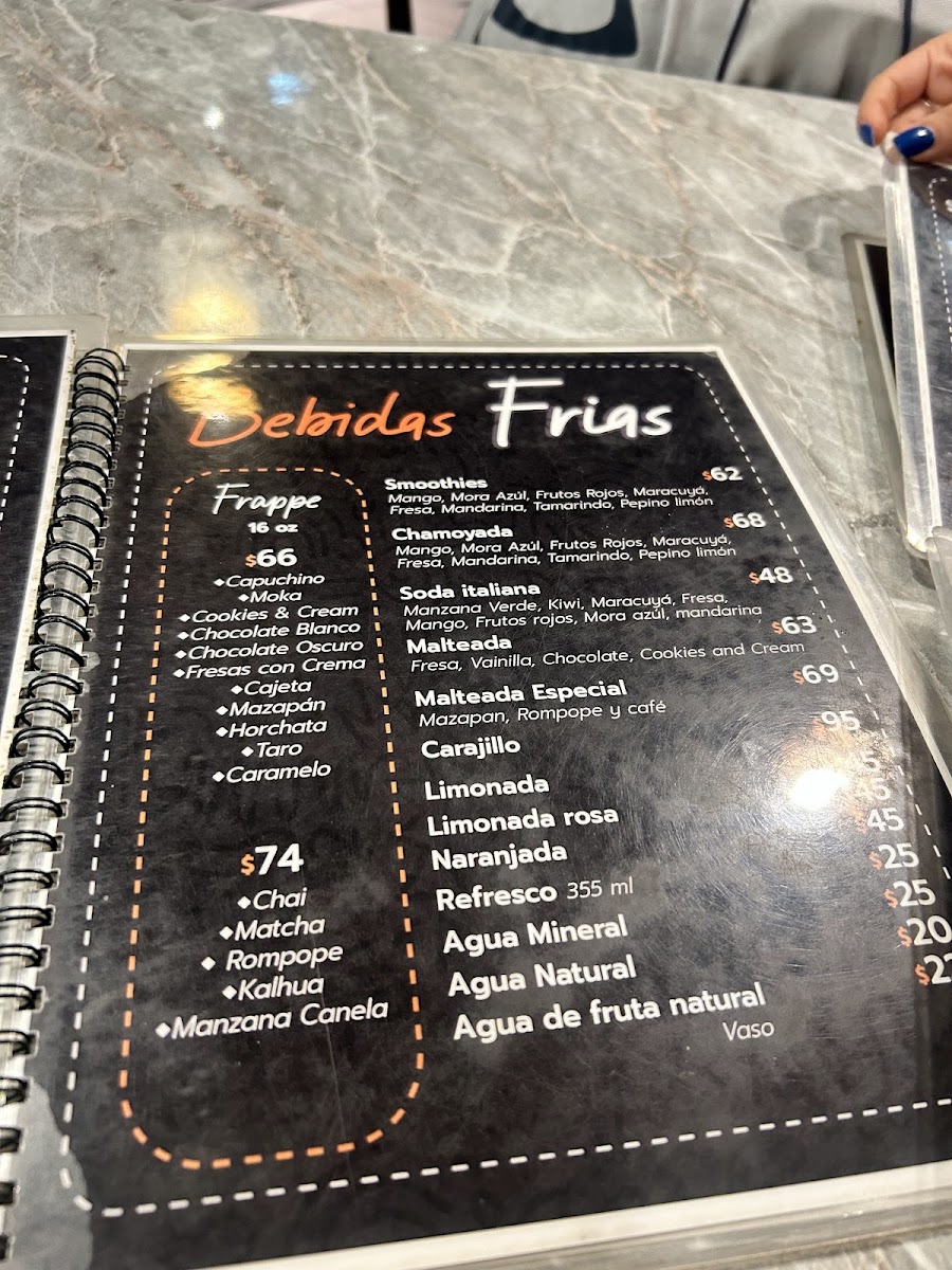 Breakfast lovers will be in heaven with their enticing choices. The Omelette De Champiñones, a fluffy three-egg creation filled with mushrooms and rich manchego cheese, paired perfectly with refried beans for only MX$94.00, allows you to start your day off right. Or opt for their Molletes, two halves of bread topped with frijoles, cheese, and pico de gallo – a simple yet delicious combination priced at just MX$85.00.